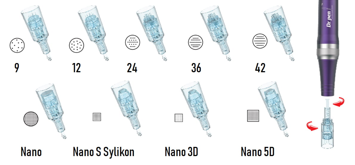 Igły Dr Pen X5, zaprojektowane tak by iniekcja była bezbolesna. Moduł jest wkręcany do rączki, co zapewnia jeszcze większe bezpieczeństwo i komfort pracy.