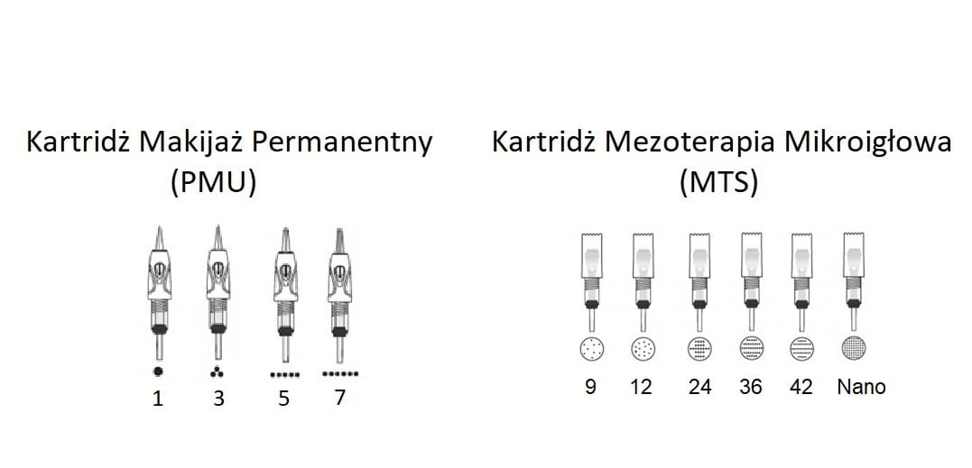 - Kartridże R1,R3,F3,F5,F7,F9 igłowe służą do makijażu permanentnego