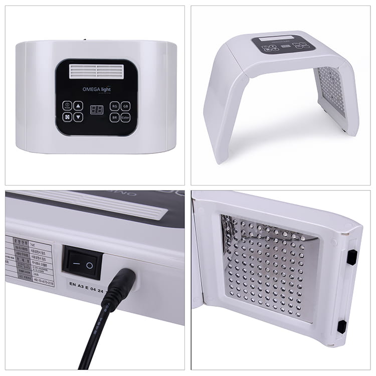- Kolor czerwony (650-730nm): stymuluje skórę do wzmożonej produkcji kolagenu i elastyny, co pomaga zredukować zmarszczki i poprawić jędrność skóry. Ma działanie przeciwzapalne i redukuje zaczerwienienia.