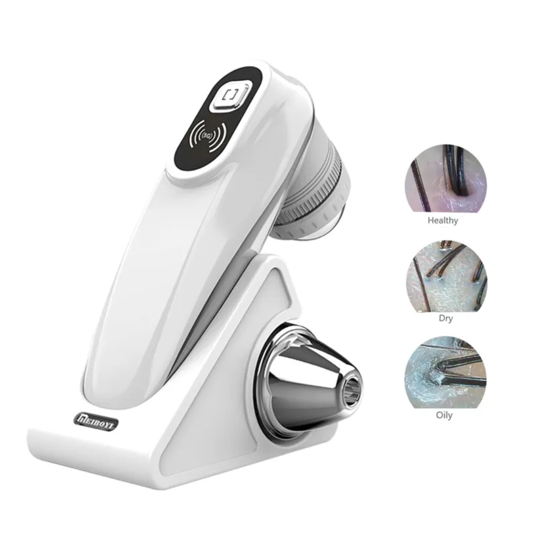 Nowoczesny, bezprzewodowy analizator skóry głowy i włosów to niezastąpione narzędzie dla specjalistów oraz osób dbających o zdrowie włosów. Urządzenie umożliwia dokładną analizę stanu skóry głowy i mieszków włosowych dzięki wymiennym soczewkom (50X i 200X) oraz wysokiej rozdzielczości obrazu 1080P.